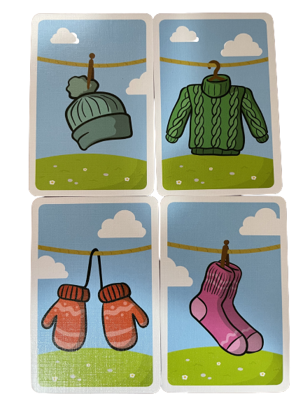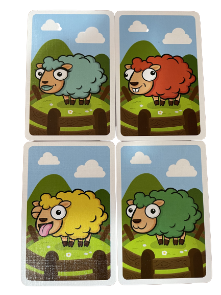 1. Todos los jugadores se colocan alrededor de la mesa de pie y reciben una carta de ropa que determina el color de su oveja.
