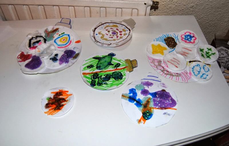 El segundo paso es muy libre. Dejamos varios tipo de materiales en la mesa y que cada uno use lo que más le apetezca para hacer su adorno. Seguramente, tendremos que aconsejar al peque en alguna ocasión, dependiendo de la edad de cada uno. Los más pequeños saben lo que quieren, pero no cómo hacerlo. Es muy divertido hablar con ellos de su idea y ayudarles a desarrollarla.