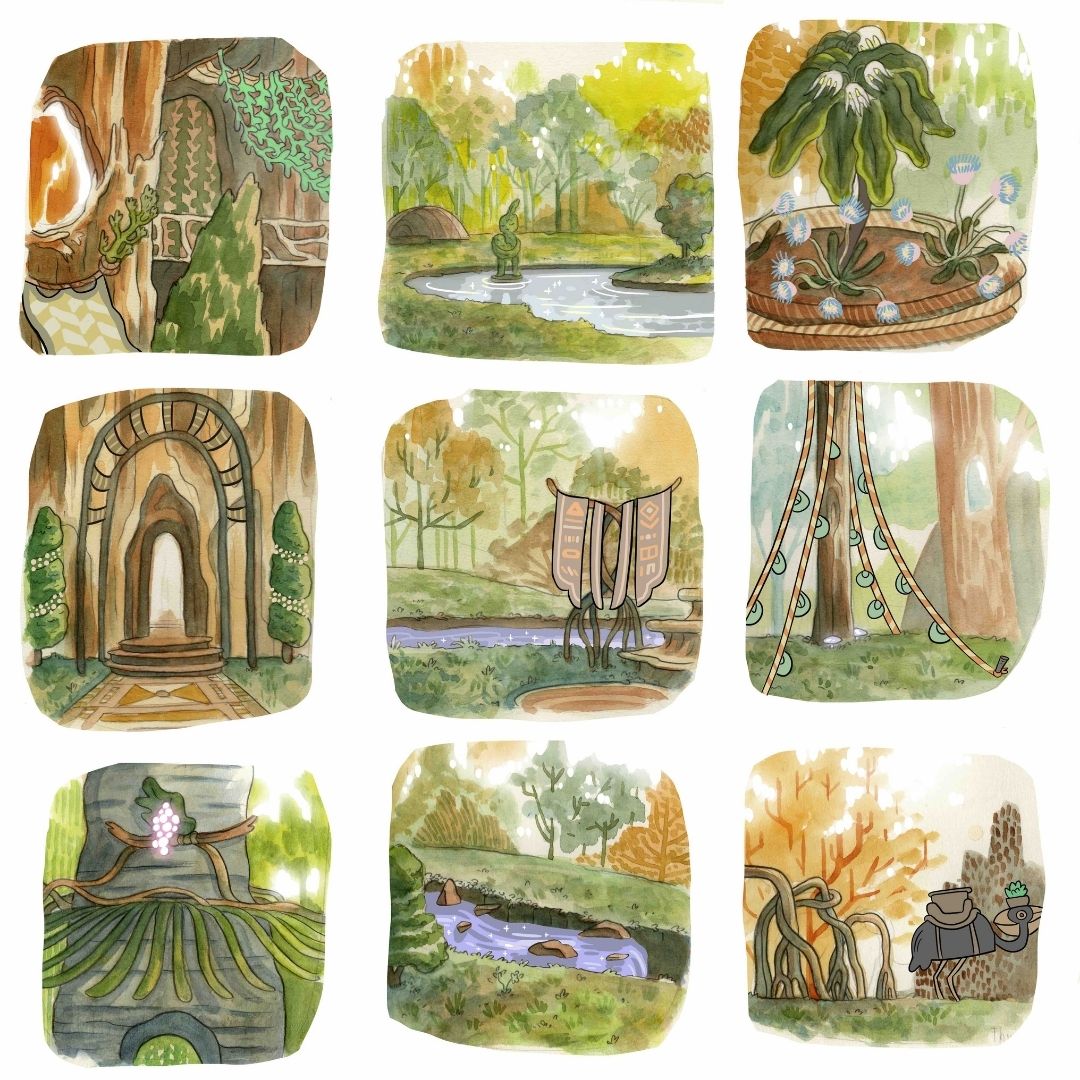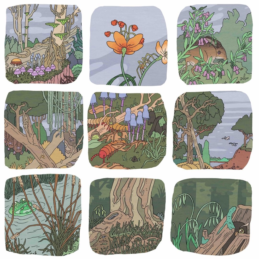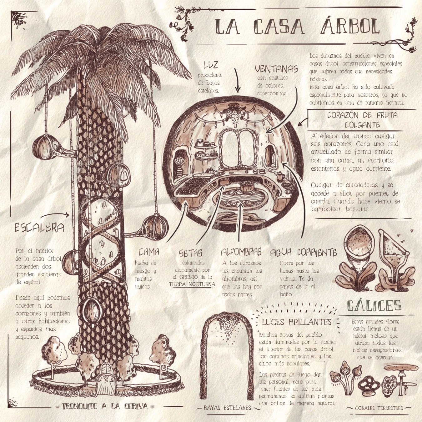Campbell Whyte, autor de esta maravilla, ha elegido Perth, la ciudad en la que nació, y vive en la actualidad, para ambientar esta novela gráfica llena de referencias a la rica naturaleza australiana. Este tomo está hecho para ser leído despacio y recreándose en cada página, cada una maravillosa en sí misma, aunque cabe resaltar las dobles páginas en las que se nos explica el universo en el que se hallan nuestros protagonistas. Cada pequeño detalle de la vida en la aldea se desgrana con esquemas maravillosos y textos muy amenos llenos de curiosidades.